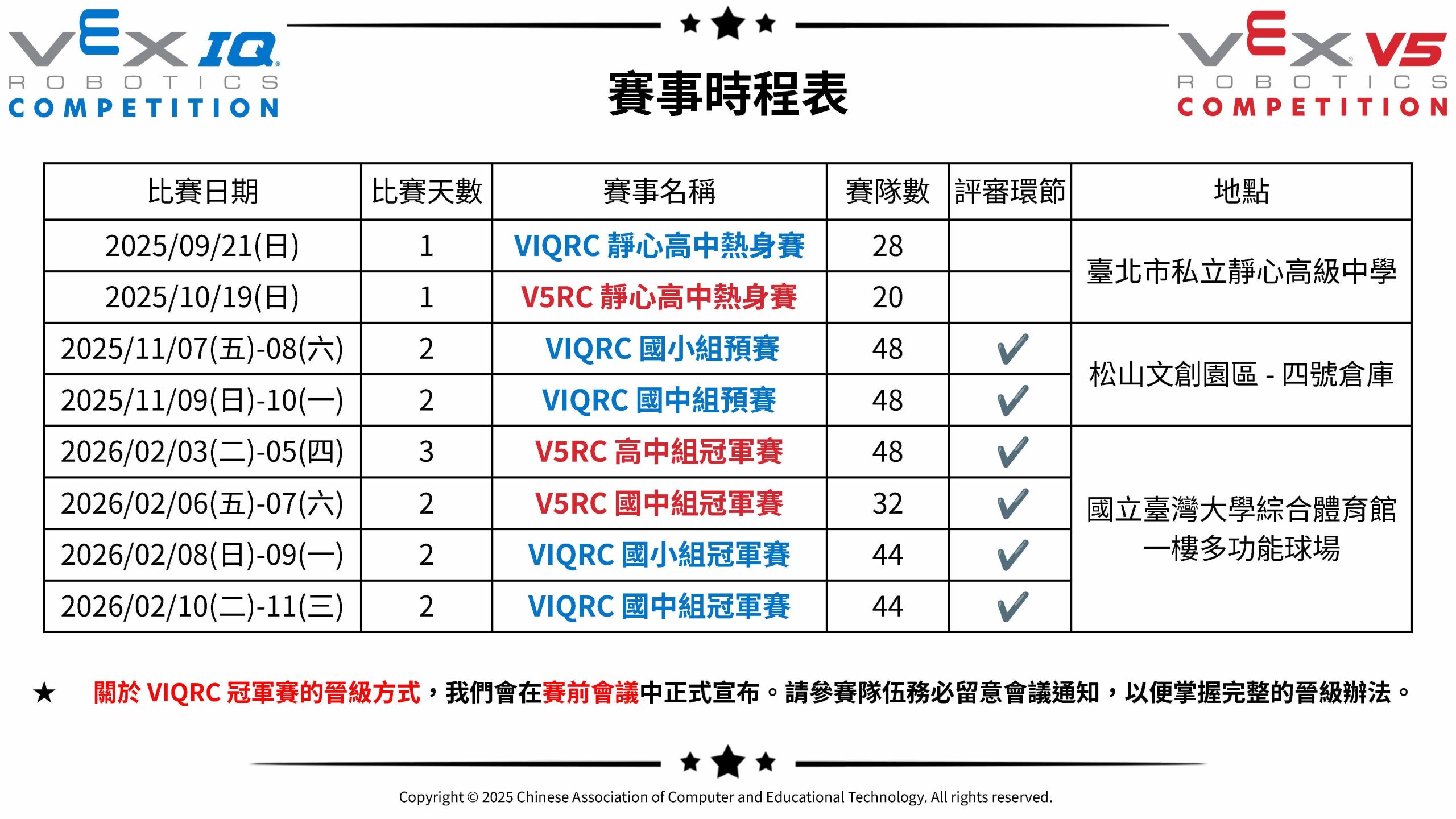 2025-2026 VEX TAIWAN OPEN 線上發佈會圓滿落幕,賽事時程調整公告!